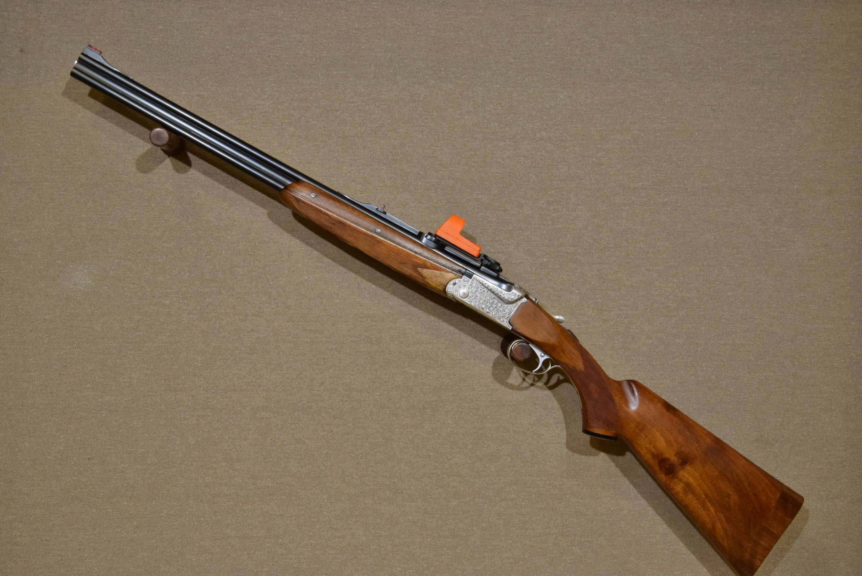 carabine express superposé Liegeoise Liege sporting gun en calibre 9.3x74R, canons de 600mm, avec montage pivotant, avec point rouge Kahles Helia RD.