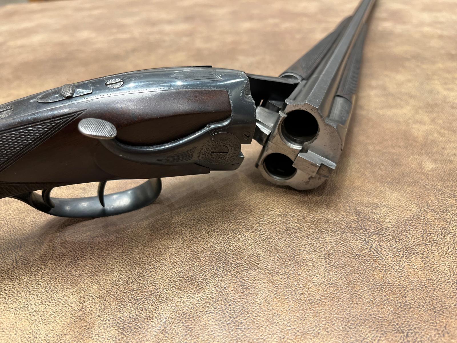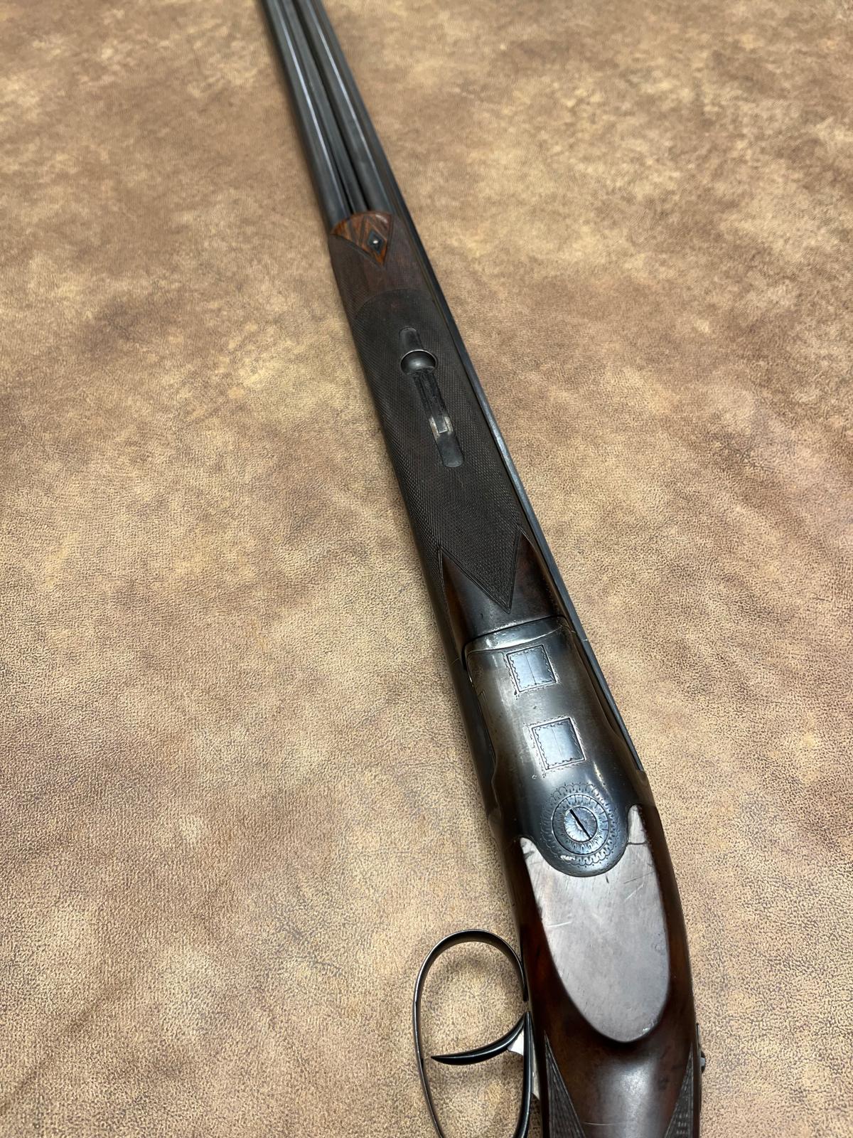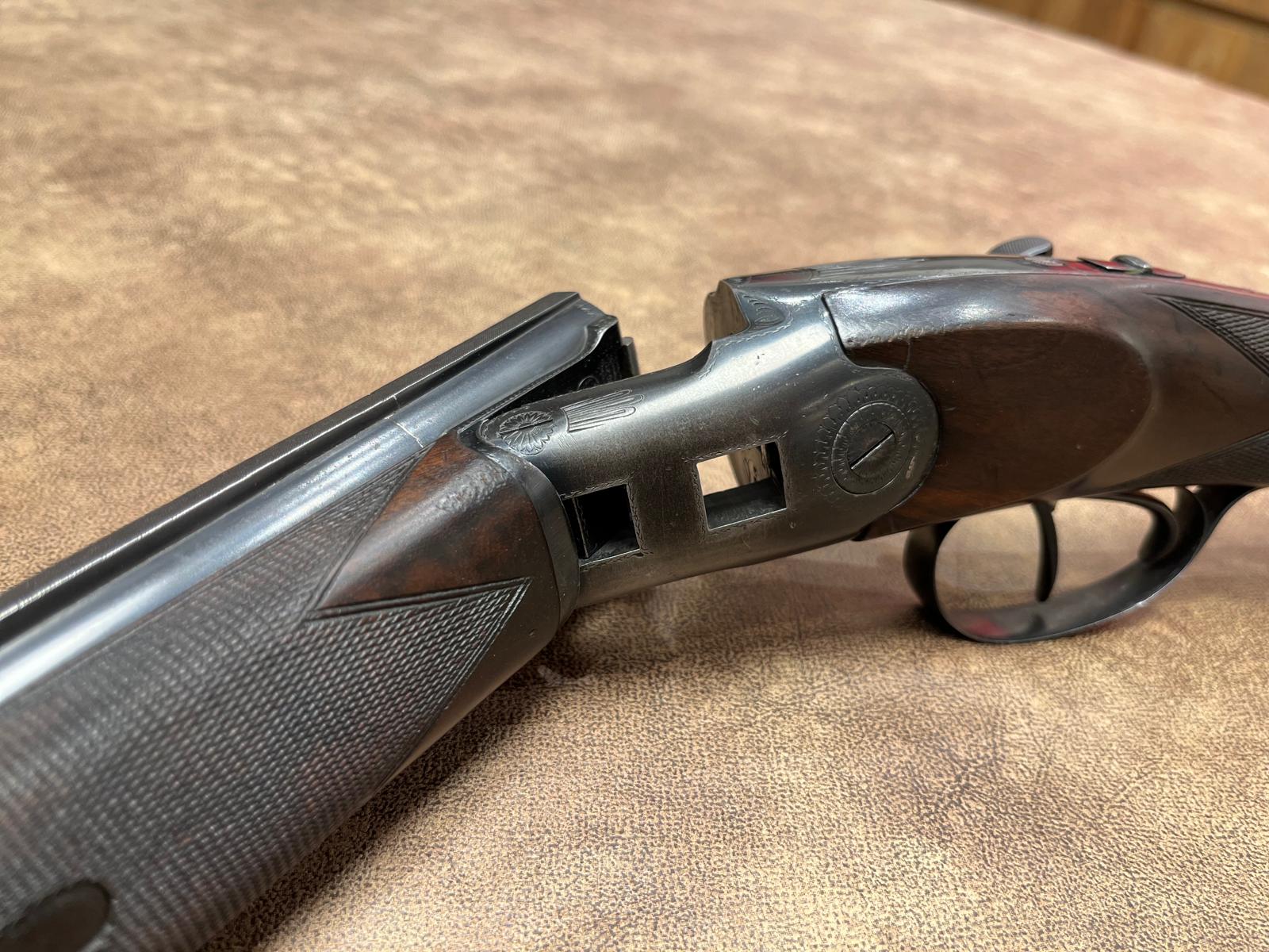 Gladloop superpose geweer Britte Super Britte in kaliber 20, lopen van 710mm. Vaste chokes 3/10 & 7/10. Dubbele trekker. Engelse kolf.